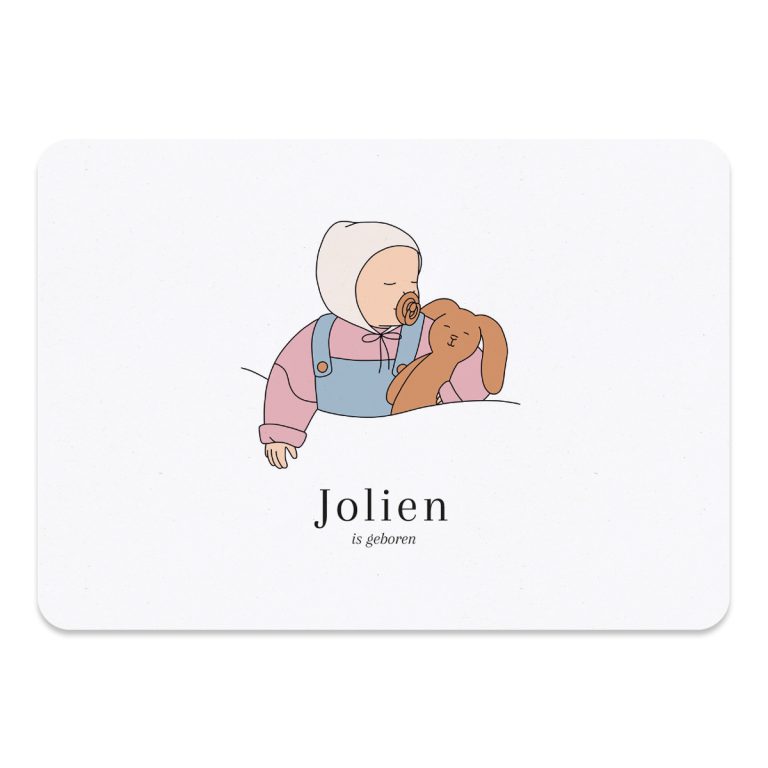 Ben je opzoek naar een stijlvol geboortekaartje met daarop een illustratie van een kindje? Bekijk dan de geboortekaartjes hieronder. De kleuren, het lettertype en het formaat van het kaartje kunnen naar wens worden aangepast. Heb je een vraag? Stuur me gerust een berichtje.