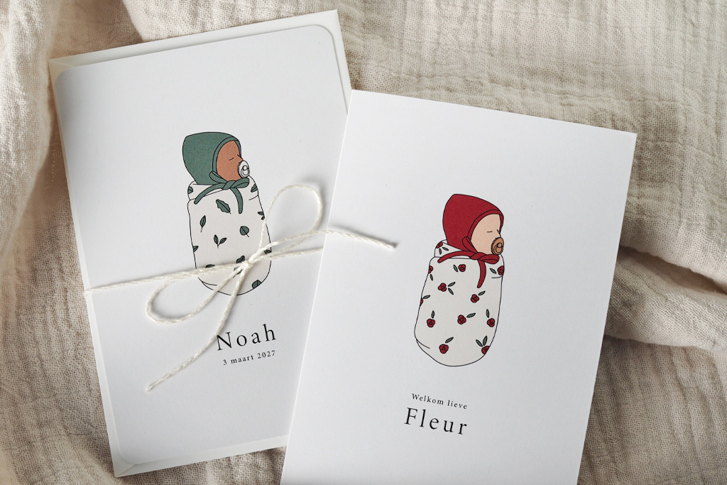 Prijzen zijn incl. btw & verzending van het pakketje. Enveloppen worden niet bij de geboortekaartjes geleverd. Bekijk deze pagina voor tips.