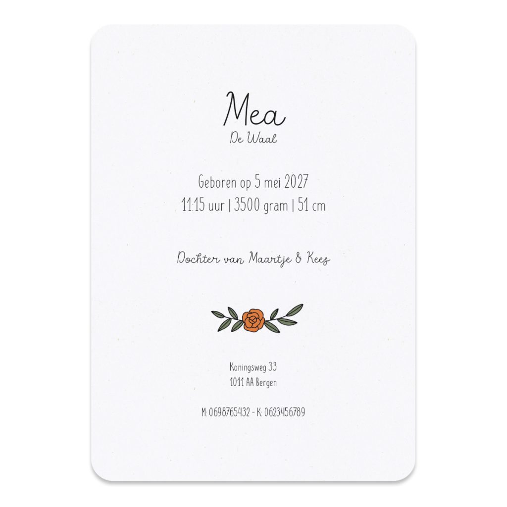 - De geboortekaartjes worden gedrukt, verstuurd en binnen drie werkdagen bij je thuis afgeleverd.
