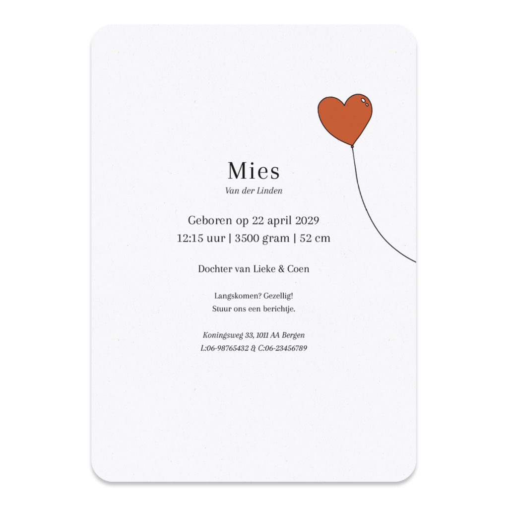 Proefdruk geboortekaartje letterballon